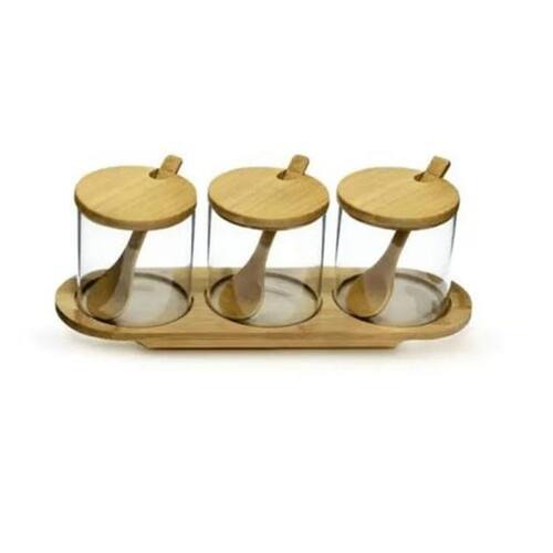 Jogo com 3 porta condimentos em bamboo 3 - casambiente Feito de vidro borossilicato e bambu, esse porta condimentos veio pra te conquistar Seu design é simples e extremamente bonito e ele conta com três peças e um suporte. O Porta Condimentos com 3 Peças Bambu vem com uma colher de cerâmica para te ajudar a pegar o conteúdo do pote e tem um tamanho ideal para guardar seus condimentos. Marca: Não Informado Ean: 7908267021956