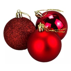 Jogo com 30 bolas natalinas na cor vermelho de 4cm de diâmetro. Dez bolas com revestimento mais denso, dez mais brilhantes e dez com revestimento de purpurina. Todas bolas acompanham cordão para pendurar. Material: plástico; Embalado em conjunto de 6 dentro de sacola plástica
