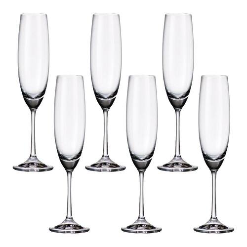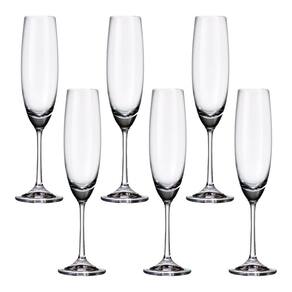 JOGO COM 6 TAÇAS DE CRISTAL PARA CHAMPAGNE COM 250 ML DA LINHA MILVUS BOHEMIA CRYSTAL