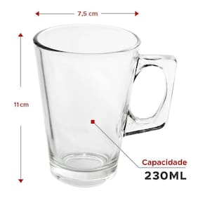 O jogo com 6 xícaras 230ml grande cappuccino alça quadrada é a opção perfeita para quem busca um produto sofisticado e elegante para uso diário em casa ou no escritório. Com capacidade de 230ml, esse conjunto de xícaras é ideal para servir café e chá. As xícaras são confeccionadas em vidro resistente, o que garante sua durabilidade excepcional. Seu design com alça quadrada proporciona um toque moderno e diferenciado ao conjunto, tornando-o ainda mais atrativo. Com dimensões compatíveis com as principais cafeteiras do mercado, esse jogo de xícaras é altamente recomendado tanto para uso residencial quanto profissional em cafeterias, padarias e restaurantes. Sua resistência permite que seja utilizado intensamente sem se preocupar com danos ou quebras. As medidas das xícaras são 11 x 11 x 7,5 cm largura x altura x diâmetro . Essas dimensões garantem o conforto na hora de segurar a xícara e também facilitam seu armazenamento. Dúvidas frequentes: 1. Qual a capacidade das xícaras? - cada xícara tem capacidade para 230ml. 2. Qual o material das xícaras? - as xícaras são confeccionadas em vidro resistente. 3. Posso utilizar essas xícaras em cafeterias e restaurantes? - sim, esse conjunto é altamente recomendado para em cafeterias, padarias e restaurantes devido à sua resistência e durabilidade excepcionais. 4. As xícaras são compatíveis com as principais cafeteiras do mercado? - sim, as dimensões dessas xícaras são compatíveis com as principais cafeteiras disponíveis no mercado. 5. Posso utilizar essas xícaras no micro-ondas? - não, essas xícaras não são indicadas para uso no micro-ondas. 6. Posso lavar essas xícaras na máquina de lavar louças? - sim, essas xícaras podem ser lavadas na máquina de lavar louças sem problemas. 7. O conjunto inclui apenas as xícaras? - sim, esse conjunto inclui apenas as xícaras. Outros itens que possam aparecer nas imagens são meramente ilustrativos e não estão inclusos.