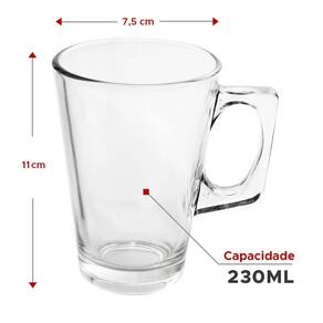 O jogo com 6 xícaras 230ml grande cappuccino alça quadrada é a opção perfeita para quem busca um produto sofisticado e elegante para uso diário em casa ou no escritório. Com capacidade de 230ml, esse conjunto de xícaras é ideal para servir café e chá. As xícaras são confeccionadas em vidro resistente, o que garante sua durabilidade excepcional. Seu design com alça quadrada proporciona um toque moderno e diferenciado ao conjunto, tornando-o ainda mais atrativo. Com dimensões compatíveis com as principais cafeteiras do mercado, esse jogo de xícaras é altamente recomendado tanto para uso residencial quanto profissional em cafeterias, padarias e restaurantes. Sua resistência permite que seja utilizado intensamente sem se preocupar com danos ou quebras. As medidas das xícaras são 11 x 11 x 7,5 cm largura x altura x diâmetro . Essas dimensões garantem o conforto na hora de segurar a xícara e também facilitam seu armazenamento. Dúvidas frequentes: 1. Qual a capacidade das xícaras? - cada xícara tem capacidade para 230ml. 2. Qual o material das xícaras? - as xícaras são confeccionadas em vidro resistente. 3. Posso utilizar essas xícaras em cafeterias e restaurantes? - sim, esse conjunto é altamente recomendado para em cafeterias, padarias e restaurantes devido à sua resistência e durabilidade excepcionais. 4. As xícaras são compatíveis com as principais cafeteiras do mercado? - sim, as dimensões dessas xícaras são compatíveis com as principais cafeteiras disponíveis no mercado. 5. Posso utilizar essas xícaras no micro-ondas? - não, essas xícaras não são indicadas para uso no micro-ondas. 6. Posso lavar essas xícaras na máquina de lavar louças? - sim, essas xícaras podem ser lavadas na máquina de lavar louças sem problemas. 7. O conjunto inclui apenas as xícaras? - sim, esse conjunto inclui apenas as xícaras. Outros itens que possam aparecer nas imagens são meramente ilustrativos e não estão inclusos.