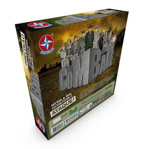 Prepare seus soldados e defina a sua estratégia de guerra! Avance sua tropa sem se descuidar em proteger o prisioneiro inimigo. Tenha cuidado, pois o inimigo espalhou minas que podem impedir seus objetivos. Idade Recomendada: A partir de 8 anos | Material: Cartonado e plástico | Quantidade de Peças: 1 tabuleiro, 40 peças verdes, 40 peças pretas, 2 folhas de etiquetas autoadesivas e 1 manual de instruções | Código Inmetro: 001817/2020 | Formato: Físico | Nome do Jogo de Tabuleiro: Combate