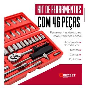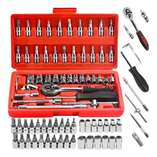 - conjunto completo de 46 peças, incluindo soquetes, chaves de fenda, chaves inglesas e muito mais.