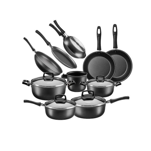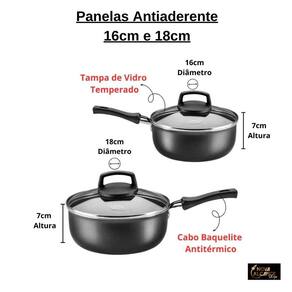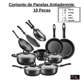 Os Kits de Panelas são produzidos em Alumínio com Revestimento Interno e Externo Antiaderente Superflon, compõe a linha Cristal e são indispensáveis para quem busca completar sua cozinha com muita versatilidade. Composto por peças essenciais em sua cozinha, possuem tampas de vidro temperado e os cabos e alças são em baquelite antitérmico rebitados, materiais que garantem segurança e conforto durante o manuseio. Além disso, as peças são fáceis de limpar e podem ir à máquina de lavar louças. Conteúdo do kit: .1 Panela de 16cm de diâmetro .1 Panela de 18cm de diâmetro .1 Caçarola de 16cm de diâmetro .1 Caçarola de 18cm de diâmetro .1 Frigideira sem tampa de 22cm de diâmetro .1 Frigideira sem tampa de 26cm de diâmetro .1 Frigideira Wok sem tampa de 24cm de diâmetro .1 Panquequeira/Tapioqueira de 22cm de diâmetro .1 Omeleteira de 18cm de diâmetro .1 Leiteira de 12 cm de diâmetro. Cor: Grafite Agradecemos a preferência. Nova Alcance Shop.