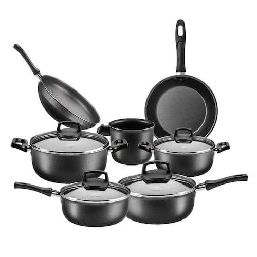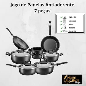 Os Kits de Panelas são produzidos em Alumínio com Revestimento Interno e Externo Antiaderente Superflon, compõe a linha Cristal e são indispensáveis para quem busca completar sua cozinha com muita versatilidade. Composto por peças essenciais em sua cozinha, possuem tampas de vidro temperado e os cabos e alças são em baquelite antitérmico rebitados, materiais que garantem segurança e conforto durante o manuseio. Além disso, as peças são fáceis de limpar e podem ir à máquina de lavar louças. Conteúdo do kit: .1 Panela de 16cm de diâmetro .1 Panela de 18cm de diâmetro .1 Caçarola de 16cm de diâmetro .1 Caçarola de 18cm de diâmetro .1 Frigideira sem tampa de 22cm de diâmetro .1 Frigideira Wok sem tampa de 24cm de diâmetro .1 Leiteira de 12 cm de diâmetro. Cor: Grafite Agradecemos a preferência. Nova Alcance Shop.