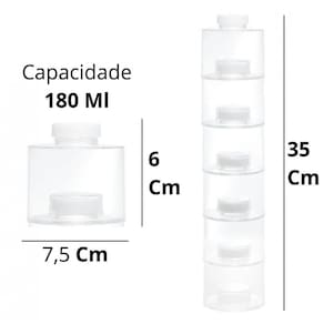 Jogo Conjunto de Porta Temperos Empilháveis Com Tampa - Lyor A vida pode ser mais fácil e mais organizada com um conjunto de potes empilháveis para temperos! Imagine só: você está cozinhando uma deliciosa refeição e precisa de vários temperos diferentes. Você procura por eles em todas as gavetas e armários da cozinha, mas não consegue encontrá-los. Você fica frustrado e começa a se perguntar se deveria desistir de cozinhar. Mas espere um minuto! Com o nosso conjunto de potes empilháveis para temperos, você terá tudo o que precisa ao alcance das mãos. E o melhor de tudo: você economizará tempo e energia! Nossos potes empilháveis são feitos de plástico durável e resistente. Cada conjunto contém 6 potes no formato de torre, permitindo que você empilhe-os em qualquer ordem que desejar. Além disso, eles são fáceis de limpar e possuem uma tampa com fechamento hermético, garantindo a frescura dos seus temperos. Você já imaginou ter uma cozinha organizada, com os seus temperos sempre à mão? Com o nosso conjunto de potes empilháveis, isso será possível! Então, o que está esperando? Não deixe a desorganização e a frustração tomarem conta da sua cozinha. Adquira agora o nosso conjunto de potes empilháveis para temperos e comece a desfrutar de uma vida mais fácil e organizada! ============================ Especificações: Pote: - Diâmetro: 7,5 Cm- Altura: 6 Cm- Capacidade: 180 Ml Torre: - Diâmetro: 7,5 Cm- Altura: 35 Cm