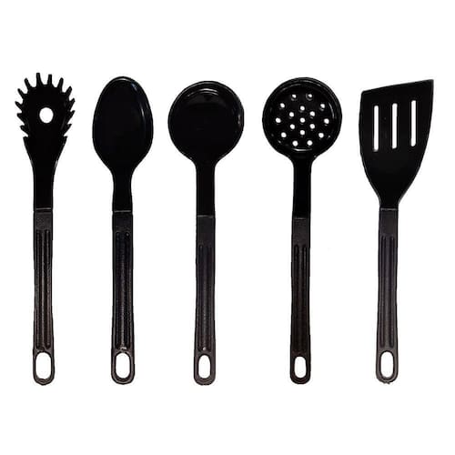 Jogo Conjunto de Talheres Nylon Utensílios Preto 5 Peças
