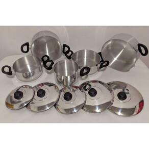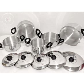 Características: São 5 panelas caçarolas: 16 x 10 cm 18 x 08 cm 20 x 08 cm 22 x 10 cm 24 x 11 cm De diâmetro cada. Grandes, altas e bem espaçosas. Excelente acabamento interno e externo Maravilhoso brilho espelhado único Para você que ama panelas brilhantes