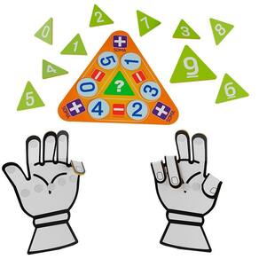 Aprendizado prático e visual: As crianças utilizam as próprias mãos e as mãozinhas cartonadas do jogo para representar números, promovendo uma compreensão mais concreta e visual dos cálculos.