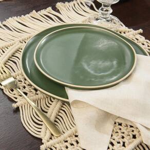 Jogo Copa E Cia 8 Peças Vivant Em Cerâmica Verde Jogo Copa e Cia 8 Peças Vivant em Cerâmica Verde - Características Gerais do Produto: - Composição: 100% Cerâmica. - Detalhes: Cerâmica com Efeito Mate (Fosco).; Design Exclusivo Copa&Cia.; As cores podem sofrer pequenas alterações de cor, variando de monitor para monitor.; Os objetos que ambientam as fotos não acompanham o produto.; As fotos produzidas são apenas como sugestão de uso com as demais peças da coleção.; Produzido na Tunísia - Cuidados: Lavar com Detergente Neutro e Esponja Macia.; Não Deixar de Molho.; Podem ser Colocados em Lava-Louças e Micro-Ondas.; Não utilizar solventes, abrasivos ou alvejantes. - Dimensões (cm): Prato Raso: 27cm ; Prato de Lanche: 20cm Acompanha o produto: - 4 Pratos Rasos4 Pratos de Sobremesa Garantia: - Sem Garantia