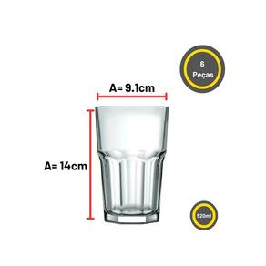 O copo é fabricado em vidro transparente altamente resistente e durável. Possui um design clássico e sofisticado, com capacidade para até 520ml.