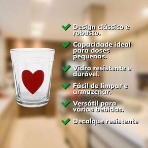 Celebre cada momento com nosso jogo encantador de 4 copos de shot em vidro, decorados com corações! Ideal para festas, encontros com amigos ou jantares românticos, esses copos trazem um toque de charme e elegância a qualquer . Com um design delicado e sofisticado, cada gole se torna uma experiência especial. Surpreenda seus convidados e transforme cada celebração em uma lembrança inesquecível. Não perca a oportunidade de adicionar este detalhe apaixonante à sua coleção!