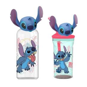 Jogo Copo e Garrafa Stitch Disney 3D Emborrachado