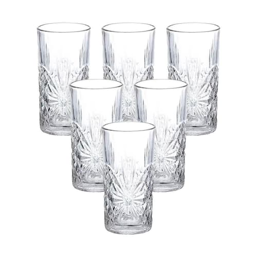 O kit de copos Rozana de 340ml apresenta estruturas alongadas e desenhos em relevo que se estendem a partir da base. Os copos apresentam grande resistência por conta de sua espessura, o que evitará que se quebre ou trinque com facilidade e garantirá uma longa durabilidade ao produto. São perfeitos para você saborear sua bebida preferida em algum evento, bares, restaurantes, confraternizações e aniversários. Conta com 6 copos que combinam com qualquer ambiente, sendo para uma ocasião especial ou até mesmo para uso diário