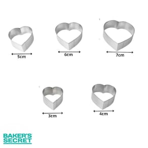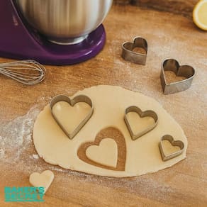 Deixe suas receitas ainda mais encantadoras com o jogo de 5 cortadores em formato de coração da Baker's Secret.