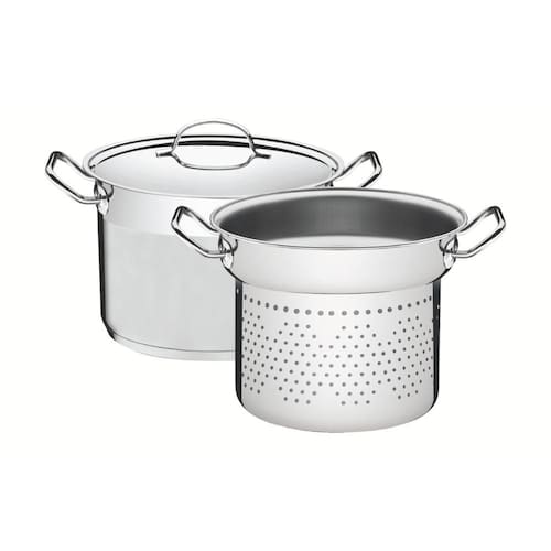 O Jogo Cozi-Pasta Tramontina em Aço Inox Fundo Triplo com Tampa Plana Detalhe Satinado 2 Peças 24 cm de diâmetro garante eficiência total na hora de cozinhar! O seu fundo triplo (aço inox + alumínio + aço inox) distribui o calor uniformemente, proporcionando um cozimento mais rápido, economizando energia e deixando os alimentos aquecidos por mais tempo. Conta também com alças longas em aço inox que conferem um manuseio profissional. Além disso, seu caldeirão pode ser utilizado para outros cozimentos. Pode ser utilizado em diversos tipos de fogão e lavado diariamente em máquina de lavar louça sem perder o brilho. A sua cozinha ganha vida e praticidade com esse incrível item.