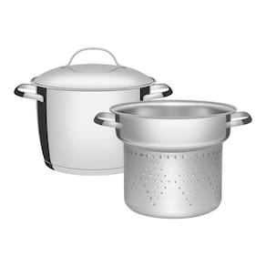 Não basta só ser bonita, a sua cozinha precisa de segurança e praticidade. O Jogo Cozi-Pasta Tramontina Allegra em Aço Inox com Fundo Triplo 2 Peças foi criado para tornar mais simples as tarefas de forno e fogão. É sua receita feita de maneira perfeita. O fundo triplo (aço inox + alumínio + aço inox) distribui o calor uniformemente, proporcionando um cozimento mais rápido, economizando energia e deixando os alimentos aquecidos por mais tempo.OrientaçõesO design clean da linha Allegra foi criado para tornar mais simples as tarefas de forno e fogão.