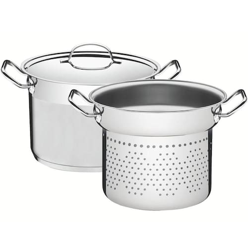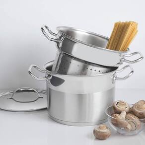 O jogo cozi-pasta Tramontina garante eficiência total na hora de cozinhar! O seu fundo triplo distribui o calor uniformemente, proporcionando um cozimento mais rápido, economizando energia e deixando os alimentos aquecidos por mais tempo. Conta também com alças longas em aço inox que conferem um manuseio profissional. Além disso, seu caldeirão pode ser utilizado para outros cozimentos. Pode ser utilizado em diversos tipos de fogão e lavado diariamente em máquina de lavar louça sem perder o brilho. A sua cozinha ganha vida e praticidade com esse item incrível!