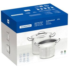 Jogo Cozi-Pasta Tramontina Professional em Aço Inox Fundo Triplo 2pçs Caldeirão Escorredor.