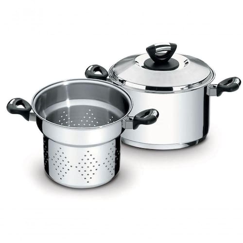 Jogo Cozi-pasta Tramontina Solar Baquelite Em Aço Inox Fundo Triplo 2 Peças 20 Cm Preparar uma macarronada vai ter um gostinho todo especial com o Jogo Cozi-Pasta Tramontina em Aço Inox Fundo Triplo com Alças Baquelite 2 Peças 20 cm de diâmetro da Linha Solar Baquelite. Pensado para aliar conforto e segurança no momento de cozinhar seus pratos, é totalmente produzido em aço inox, que não solta resíduos, mantendo os alimentos saudáveis. O material, altamente durável, confere beleza e higiene ao conjunto. A tecnologia de fundo triplo (aço inox + alumínio + aço inox) é econômica, pois distribui o calor uniformemente, proporcionando um cozimento mais rápido e mantendo os alimentos aquecidos por mais tempo. Produzidas em baquelite, um isolante térmico com desempenho superior, os cabos, alças e pegadores garantem segurança na hora dos preparos, pois não aquecem. Possui tampa com saída de vapor e encaixe perfeito. O design diferenciado impressiona pelo acabamento em alto brilho. Muito prática, o conjunto pode ser lavado diariamente na máquina de lavar louças. Seja qual for seu fogão, os produtos podem ser utilizados em fogões à gás, elétricos, vitrocerâmicos e por indução. Para servir clientes ou amigos, é a escolha perfeita que adiciona bom gosto e praticidade nos seus pratos. Garantia do fabricante - 12