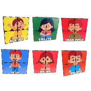 Jogo Cubos Educativos Coloridos para Crianças Emoções em MDF