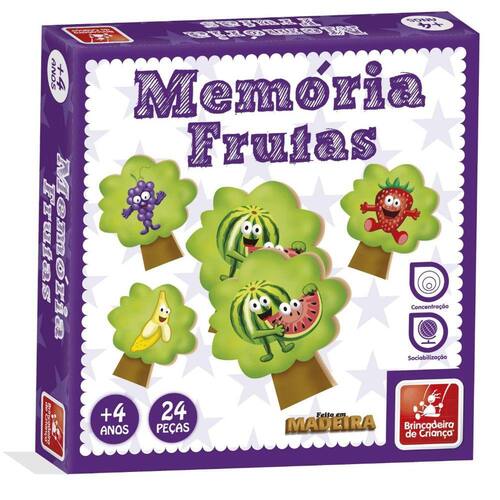 O Jogo da Memória de Frutas é um clássico jogo formado por peças feitas em madeira que apresentam uma figura em um dos lados e cada figura se repete em duas peças do jogo.