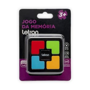 Um jogo para pensar rápido, com efeitos de sonoros e de luzes. Este é o jogo da memória letron, uma releitura de um antigo brinquedo dos anos 80, febre mundial à época. Com 5 níveis de dificuldade, onde o objetivo é repetir as sequências de luz e som. Por isso, ele é um brinquedo educativo que propicia o desenvolvimento intelectual utilizando a memória e a coordenação motora, numa divertida experiência que estimula a memória, as habilidades e a capacidade cognitiva das crianças, sendo um alegre método de aprendizagem. Lúdico e excelente opção de presente, o jogo da memória letron é também um ótimo exercício para a exercitar a concentração, sendo um brinquedo educativo que possui certificado inmetro e recomendado para crianças a partir dos 3 anos, mas que diverte e descontrai também jovens, adultos e a família toda. Além disso ele é fácil de transportar, podendo ser levado para todos os lugares. Ficha técnica: composição: plástico e componentes eletrônicos fonte de alimentação: 3 pilhas de 1,5v já inclusas no produto 5 níveis de dificuldade certificado inmetro 011937/2023 medidas: 6cm x 6cm x 3cm embalagem: 1 unidade atenção: imagem meramente ilustrativa. Pode ocorrer mudanças no tom da cor para o produto real ou mudanças na embalagem sem aviso prévio por parte do fornecedor/fabricante. Homologação Inmetro: ABCP-BRI-0099-2021-12