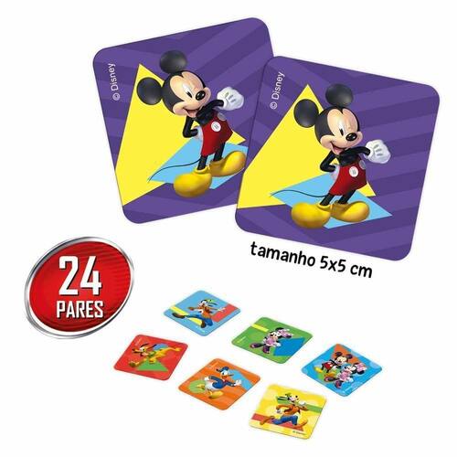 Jogo Da Memória Infantil - Disney Junior - Mickey - 48 Peças - Toyster Jogo da Memória Infantil - Disney Junior - Mickey - 48 Peças - Toyster: Neste jogo as crianças aprendem brincando a reconhecer os personagens das histórias da Disney Junior. Divirta-se com esta brincadeira colorida. Jogo da Memória com 48 peças grandes e resistentes do Mickey e seus amigos. Peças em papel e papel cartão. Com alta qualidade de impressão para valorizar cada detalhe das imagens. É um ótimo passa tempo para crianças, adolescentes e adultos. Tamanho de cada peça 5.5 x 5.5 cmINFORMAÇÕES:- Produto: Jogo de Memória Mickey- Marca: Toyster- Coleção: Disney Junior Mickey- Tipo: Jogo de Memória Infantil- Categoria: Jogos e Tabuleiros- Dimensões: 5.5 x 5.5 cm (peças)- Conteúdo: 48 peças (24 pares)- Recomendação: para crianças a partir de 04 anos de idadeESPECIFICAÇÕES:- Referência: 8004- Código de Barras: 7896054080043- Embalagem (C x A x L): 13.2 x 20.5 x 4.5 cm- Embalagem (Peso): 0.70 kg- Material / Composição: papel e papel cartão- Registro: CE-BRI/IQB 002320 NM 300/602 OCP 0006- Certificado: Órgãos Autorizados - OCPS (Organismos de Certificação de Produtos)BENEFÍCIOS DE BRINCAR DA MEMÓRIA:- Eleva a autoestima- Exercita a memória- Estimula o raciocínio- Exercita o imaginário- Desenvolve a criatividade- Desenvolve percepção visual- Desperta a atenção e curiosidade- Desenvolvimento neuropsicológico- Estimula habilidades motoras básicas- Incentiva a comunicação e linguagem- Desenvolve aspectos emocionais e afetivo- Estimula o reconhecimento de formas e coresAVISO: - As imagens são meramente ilustrativas- Os tamanhos e medidas são aproximados- As cores e estampas dos produtos podem ter variações- As informações são de responsabilidade do fabricante ou fornecedor