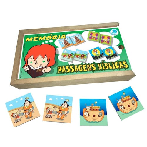 Jogo da Memória com motivos das passagens bíblicas, para brincar e aprender as histórias de grandes heróis bíblicos. Material: MDF - 40 peças - 50x50x3 mm (cada)Embalagem: Estojo de MDF - 226x124x40 mmFaixa etária: A partir de 04 anos Ean: 7898353144815