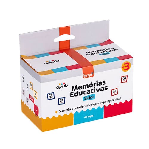 Jogo da Memória de Sílabas (40 peças): reforça a atenção, a memória visual e o reconhecimento de sílabas, tornando o aprendizado da leitura mais intuitivo.
