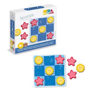 O jogo da velha é um clássico dos jogos de tabuleiro e apesar de sua simplicidade, suas qualidades de estratégia e competição amigável o tornam um jogo atemporal que oferece uma experiência envolvente e divertida, além disso, é frequentemente utilizado como uma ferramenta para ensinar crianças sobre padrões, simetria e lógica. Essa versão do jogo da velha possui peças ilustradas do céu, sol e estrelas com cores vibrantes e intensas que chamam a atenção das crianças apesar da simplicidade do jogo, além de ser portátil, possível de ser transportado na bolsinha que acompanha o jogo. Este jogo é indicado para crianças acima de 4 anos, ele é feito em madeira MDF material resistente e seguro.