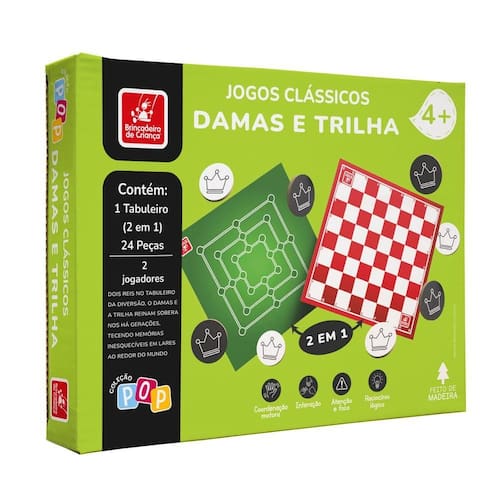 Contém dois jogos clássicos em um único produto: Damas e Trilha.