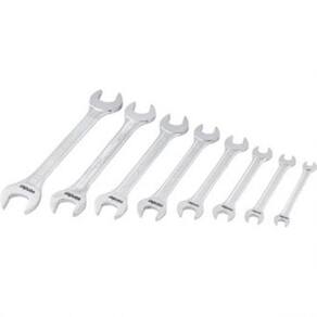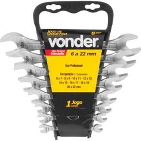 Pcontém:/pp1 Jogo de chaves fixas, composto por um suporte plástico com 8 peças, sendo: 6 mm x 7 mm, 8 mm x 9 mm, 10 mm x 11 mm, 12 mm x 13 mm, 14 mm x 15 mm, 16 mm x 17 mm, 18 mm x 19 mm e 20 mm x 22 mm/ppIndicado para apertar e soltar porcas e parafusos sextavados. Nunca utilizar prolongadores sobre as chaves, pois isso aumentará o torque aplicado e diminuirá a vida útil das ferramentas./ppproduzido em aço cromo vanádio, proporcionando melhor qualidade e durabilidade. Possui acabamento cromado que oferece maior proteção contra oxidação/corrosão. Conta ainda com pontas estreitas que possibilitam o uso em locais de difícil acesso./ppaço CromoVanadio/ppAcabamento: Cromado Fosco/pp Medidas do produto sem a embalagem Comprimento 45.0000 Largura 13.0000 Cm Altura 3.0000 Cm Peso do produto 0.5300 Ean: 7893946527488