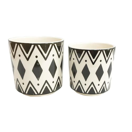 Jogo De 2 Floreiros 15/13Cm Que tal deixar a sua casa repleta de flores e plantas Este jogo contem 2 floreiros de cerâmica é ideal para colocar suas flores deixando o ambiente ainda mais gracioso. A peça proporciona um toque moderno no seu ambiente. Ideal para usar em bancadas, ou como centro de mesa decorando com elegância sua sala de jantar. A embalagem contém 1 Jogo de 2 Floreiros 15/13cm. Ficha técnica Floreiro 15 cm Comprimento: 15 cm Largura: 15 cm Altura: 15 cm Cor: Branco/Preto Material: Cerâmica Floreiro 13 cm Comprimento: 13 cm Largura: 13 cm Altura: 13 cm Cor: Branco/Preto Material: Cerâmica Marca: Fujian Dehua Ean: 7898322101016