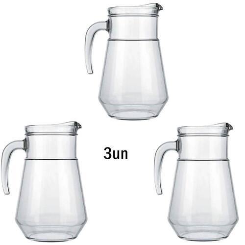 Garantia: 90 dias / Peso: 2,49kg / Cor predominante: transparente / Referência: 7891155012825X3 Dimensões: 16,3cm (C) x 13,7cm (L) x 21,7cm (A); Capacidade: 1,5l; Conteúdo do jogo: 3 jarras; Material: vidro. Aviso: supervisionar o uso pelas crianças.