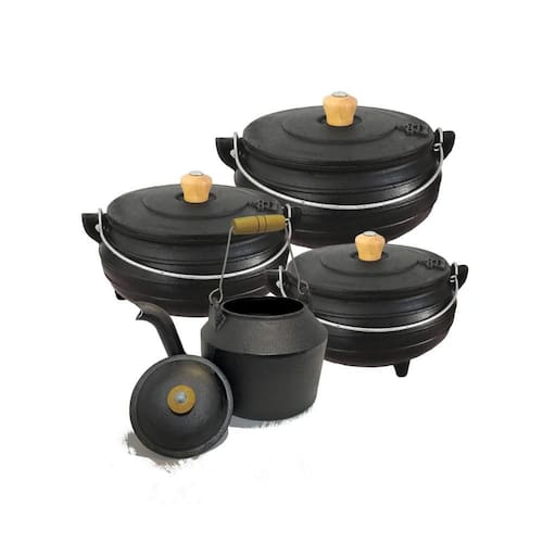 Jogo de 3 panela de ferro mineira tripé com chaleira nº 9 Ideal para arroz, frango, feijão e etc. A panela de ferro casa e jardim apresenta uma grande versatilidade onde elas fornecem suplementação de ferro para o organismo,não liberam toxinas nos alimentos. Tendo uma resistência duradoura cozinhando os alimentos por muito tempo. Importante: - antes de usar pela primeira vez, encha com água e ferva por alguns minutos. - ainda quente remova essa água com cuidado e lave com uma esponja macia - lave bem. - seque -a na chama do fogão. Assim ela estará pronta para o uso - sempre secar na chama do fogão antes de guardar e tbm pode passar uma fina camada de óleo para proteger contra ferrugem. Descrição do jogo: Três panelas: 1 - 1,0 litros 1 - 1,6 litros 1 - 2,3 litros Acompanha tampa de ferro Chaleira de ferro 2 litros Chaleira de ferro fundido casa e jardim com alça de madeira com batoque de madeira e tampa de ferro, com capacidade de 2 litros. Ideal para preparar seu chá da tarde ou seu café, indicado para rede de hotelaria e cozinhas industriais, bem como restaurantes e linha gourmet. Diâmetro: 25cm Altura: 15cm Peso: 2,89kg Capacidade: 2 litros Material: ferro fundido. : 90 dias contra defeito de fabricação. Nós da casa e jardim comércio trabalhamos com produtos de alta qualidade em ferro fundido, como fornos de ferro, panelas de ferro mineira, chapas de fogão a lenha, frigideira de ferro casa e jardim, chapa bifeteira de ferro, fogareiro ferro fundido a alcool rechaud, calderão de ferro, calderão de bruxa, rechaud de ferro, chapa de ferro casa e jardim para porções, panelas de ferro, churrasqueiras a bafo toda linha doméstica para lhe atender.