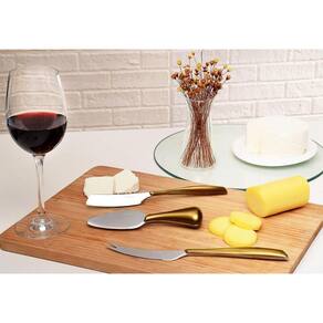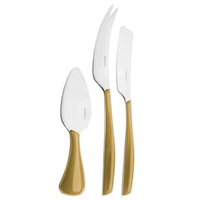 As Facas para Queijo da Linha Glamour da Bugatti são elegantes e eficientes na hora de cortar e servir seus frios no jantar com os amigos, super fácil de se usar é um item que vai fazer a diferença na sua cozinhaAlém de serem bonitas e elegantes essas facas são feitas de aço inox de ótima qualidade que vão durar por muito tempo em sua cozinha.Contém 3 peças:1 Faca para queijo duro aprox. 16cm ;1 Faca ponta dupla aprox. 23cm ;1 Espátula para queijo aprox. 21cm ;material: Aço inox 18/10Marca: BugattiCor: DouradaGarantia de 6 meses Sobre a Bugatti:A Bugatti é uma tradicional Marca Italiana, reconhecida mundialmente pelo alto design e qualidade dos seus produtos. A empresa se destaca pelo seu estilo único e inovador, combinando tecnologia com os valores da tradição artesanal e sua responsabilidade com a sustentabilidade ambiental. Ean: 8020178936187
