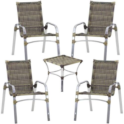 Jogo de 4 Cadeiras Emily em Aluminio Area Varanda e Mesa de Centro Garden em Aluminio Trama
