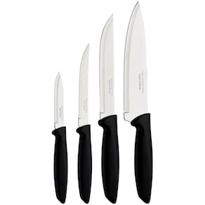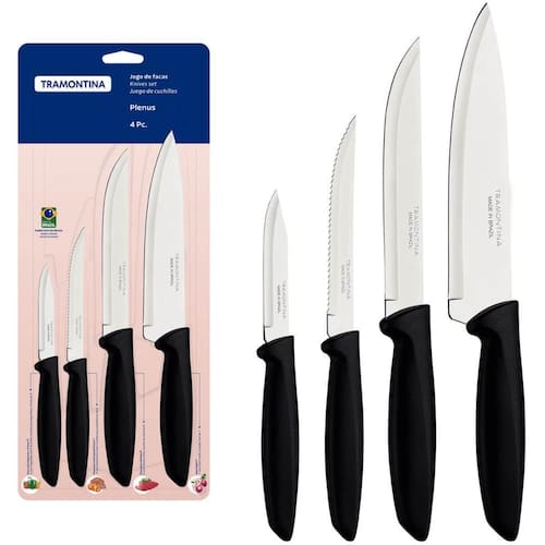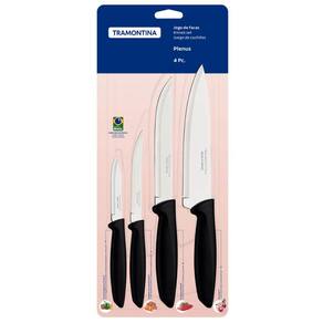 Jogo de Facas Tramontina Plenus Preto 4 peças Carne Frutas Legumes Aço Inox Polipropileno.