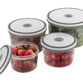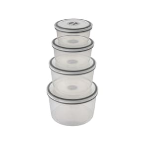 Jogo de potes plástico hermético redondo com tampa a15405201 kit 4 peças electrolux cinza- sua cozinha organizada sem trabalho:Os potes possuem tamanhos diferentes e você ainda pode registrar a data em que o seu alimento foi guardado. Práticos e bonitos, o kit de potes vai ajudar você a organizar a sua cozinha com praticidade e um toque de charme.- fechamento perfeito para uma melhor conservação: Os potes possuem fechamento hermético e um sistema de vedação com borracha dupla, que ajudam a manter os alimentos frescos por mais tempo e também evitam que o seu cheiro acabe se espalhando.- praticidade que você queria: Os potes electrolux acompanham você no seu dia a dia agitado. Feitos em material resistente, eles podem ser usados no freezer e também podem ser lavados na máquina de lavar louças. Perfeitos para você que é prática e não gosta de perder tempo.- facilidade sempre:Não adiantaria nada os potes terem um fechamento perfeito se eles dessem aquele trabalho para abrir depois, por isso a electrolux utilizou tampas easy-open que deixam a abertura, e a sua vida, muito mais facéis.- sempre pensando no seu bem-estarAlém de serem resistentes, os potes do kit possuem toda a qualidade da electrolux, que se preocupa com a sua saúde e a de toda a sua família. Feitos em material ideal para o armazenamento de alimentos, os potes ainda são livres de bpa, substância altamente nociva à saúde.Ficha técnicaMarca: electroluxReferência: a15405201Modelo: a15405201Material: plásticoCaracterísticas: herméticoFormato: redondoCapacidade: - 550ml- 880ml- 1,43l- 2,3lQuantidade de peças: 04Tipo de fechamento: herméticoIndicado para: uso diárioPode ir - ao micro-ondas: simPode ir - à lava-louças: simPode ir - ao freezer: simRecursos: com tampas, na cor brancaPeso aproximado - peso do produto: 390 gramasPeso aproximado - peso do produto com embalagem: 450 gramasCor: transparenteDimensões do produto - largura: - 11,4cm- 13,3cm- 15,6cm- 18,2cmDimensões do produto - altura: - 8cm- 9cm- 10,1cm- 11,6cmDimensões do produto - profundidade: - 11,4cm- 13,3cm- 15,6cm- 18,2cmDimensões do produto com embalagem - largura: 19cmDimensões do produto com embalagem - altura: 19cmDimensões do produto com embalagem - profundidade: 12cmGarantia - prazo de garantia: 03 meses de garantia legal.Conteúdo da embalagem: 01 jogo de potes