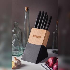 Você vai impressionar seus convidados com a Jogo de Facas Tramontina Plenus com Lâminas em Aço Inox Cabos de Polipropileno Preto e Suporte de Madeira 5 Peças da Linha Plenus, resistentes e fáceis