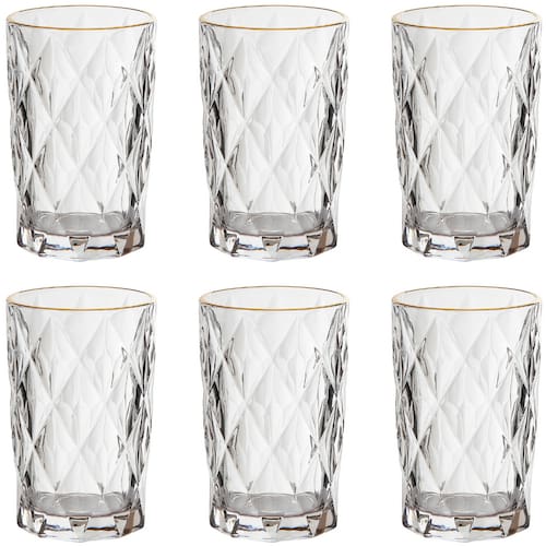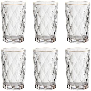 Jogo De 6 Copos Altos Borda Dourada 340ml Diamond Hauskraft Ref: COPD340GD