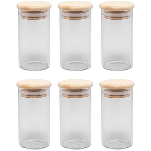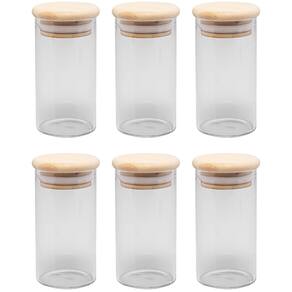 - Material: Vidro borossilicato e Bambu - Capacidade: 120ml - Dimensões da Peça: Altura: 9cm x Diâmetro: 4,5cm - Tipo de embalagem: Avulso sem caixa - Quantidade: 6 unidades