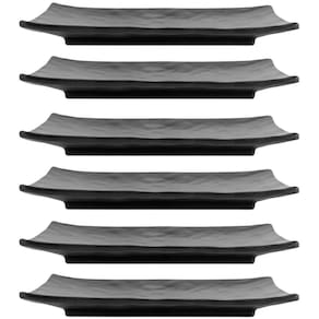 Jogo de 6 Pratos de Sushi Melamina Retangulares 20x14cm Preto Gourmet Mix Travessas para Servir