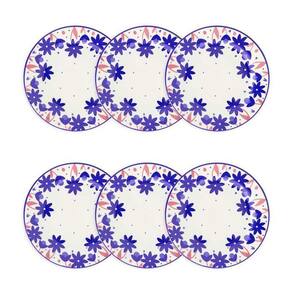As flores são sinônimo de beleza e delicadeza. Na coleção Donna Sossego, pequenas flores em azul cobalto são aplicadas nas abas dos pratos com detalhes em rosa, formando um lindo jardim. A serenidade da decoração inspira momentos de calmaria e puro sossego. O conjunto é composto por 6 pratos de sobremesa.Conteúdo da embalagem: 6 Pratos Sobremesa 18 Cm- : 3 Meses para Defeitos de fabricação- Marca: Biona- Uso: Resistente a micro-ondas- É apto para lava-louças: Sim- Tipo da embalagem: Papelão pardo- Material: Cerâmica- Formato: Redondo- Cor: Multicor- Decoração: Estampado- Modelo: Donna Sossego- Tipo: Sobremesa- Formato de venda: Kit- Diâmetro: 18 cm-Quantidade de peças:6 ATENÇÃO: Para compras de pessoa jurídica, cadastre os dados exatamente como consta em seu cartão do CNPJ Marca: Não Informado
