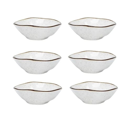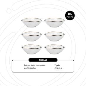 Descrição: Conjunto de 6 Tigelas Oxford Ryo Maresia 18cm (500ml). Inspirado no conceito japonês wabi-sabi, este conjunto valoriza a beleza do irregular e do imperfeito, com estética que remete às praias, areia e frescor do mar. Cada peça recebe aplicação manual de esmalte e filete reagente, garantindo unicidade. Produzido em porcelana, é compatível com micro-ondas e máquina de lavar louças, perfeito para servir lanches rápidos ou porções menores com elegância.