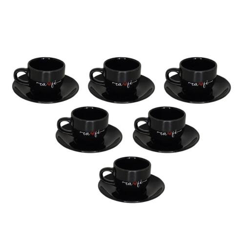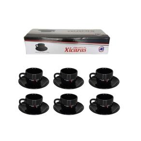 Jogo De 6 Xicaras Com Pires Preto 90Ml Veneza - Ad