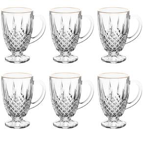 Jogo De 6 Xícaras Cristal 150ml Borda Dourada Diamante Lyor Ref: 5956KIT