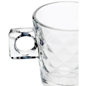 Jogo De 6 Xícaras De Café Diamond 80 ml Jogo de 6 xicaras para café Diamond em vidro transparente. Esse jogo de xícaras tem um designer sofisticado que acrescenta a sua decoração elegância ao servir as refeições. Indispensável para sua cozinha esse jogo de xicaras vai agregar beleza e qualidade no café do seu dia a dia, bem como no chá da tarde com seus convidados.