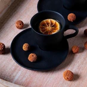 O conjunto de chá Porto Brasil Cerâmica da Coleção Hygge, linha Bio Preto Matte, é produzido em stoneware de alta performance e combina design contemporâneo com qualidade superior para elevar a experiência à mesa. Desenvolvido com matérias-primas naturais selecionadas e um processo exclusivo de queima, com acabamento manual, oferece excelente resistência e durabilidade para o uso diário, mantendo um visual sofisticado na cor preta matte. Por se tratar de peças com produção artesanal, cada item pode apresentar variações sutis de formas, relevos e tonalidades, reforçando a originalidade e a autenticidade do conjunto. A caixa contém 6 xícaras de chá ( 7,5cm x A 7,5cm, capacidade de 170ml) e 6 pires descentralizados ( 13,5cm x A 1,5cm).